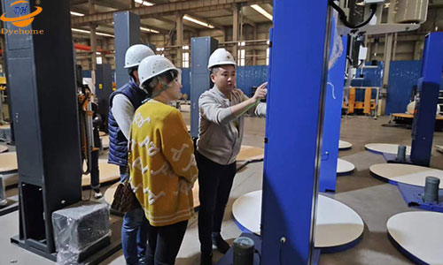 他首先向客戶展示了公司的企業文化,然后講解了客戶感興趣的機器,包括托盤裹包機、在線裹包機、搖臂裹包機、自走式裹包機等,介紹了每臺機器的操作方法,客戶對操作畫面非常滿意。