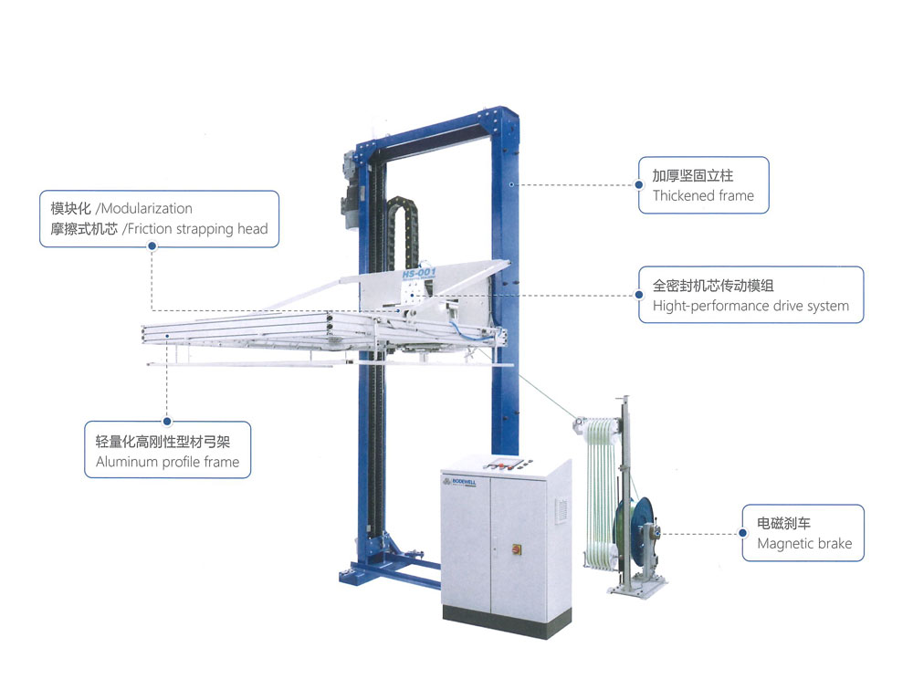 ● 機型可擴展為:自動加垂直護楞一體機、帶壓力裝置水平捆扎機。