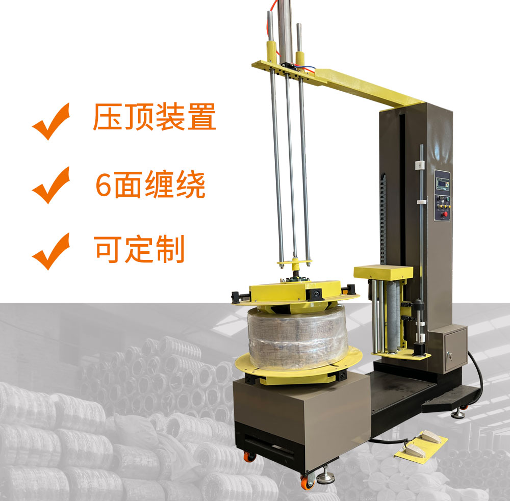壓頂裝置保證貨物在包裝過程中平穩,包裝高度可根據客戶要求定做.并且可通過人工翻轉90度實現六面包裝。