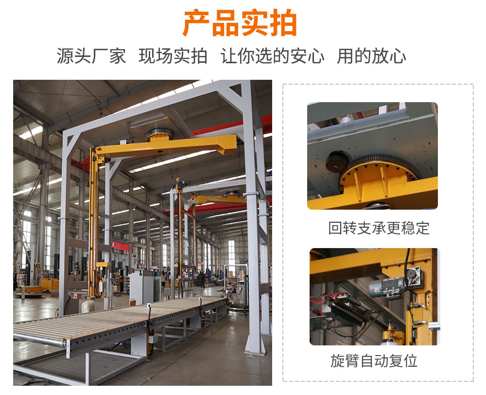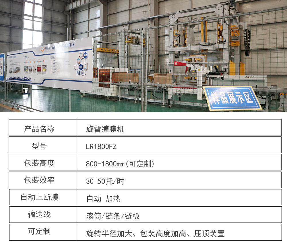 大宏佳森在線式旋臂纏繞機LR1800FZ懸臂纏繞機主要適用于生產量大、包裝效率較高的現代化作業,包裝成本低、效率高滿足貨物的包裝要求。可根據不同的產品和現場的實際需求,定制不同的包裝系統,自動完成貨物的感測、包裝,輸送等全過程,輸送系統可采用滾筒、鏈條、鏈板等不同的形式,自動上斷膜機構可實現無人化操作。廣泛應用于食品、飲料、化工、造紙、建材等行業。
