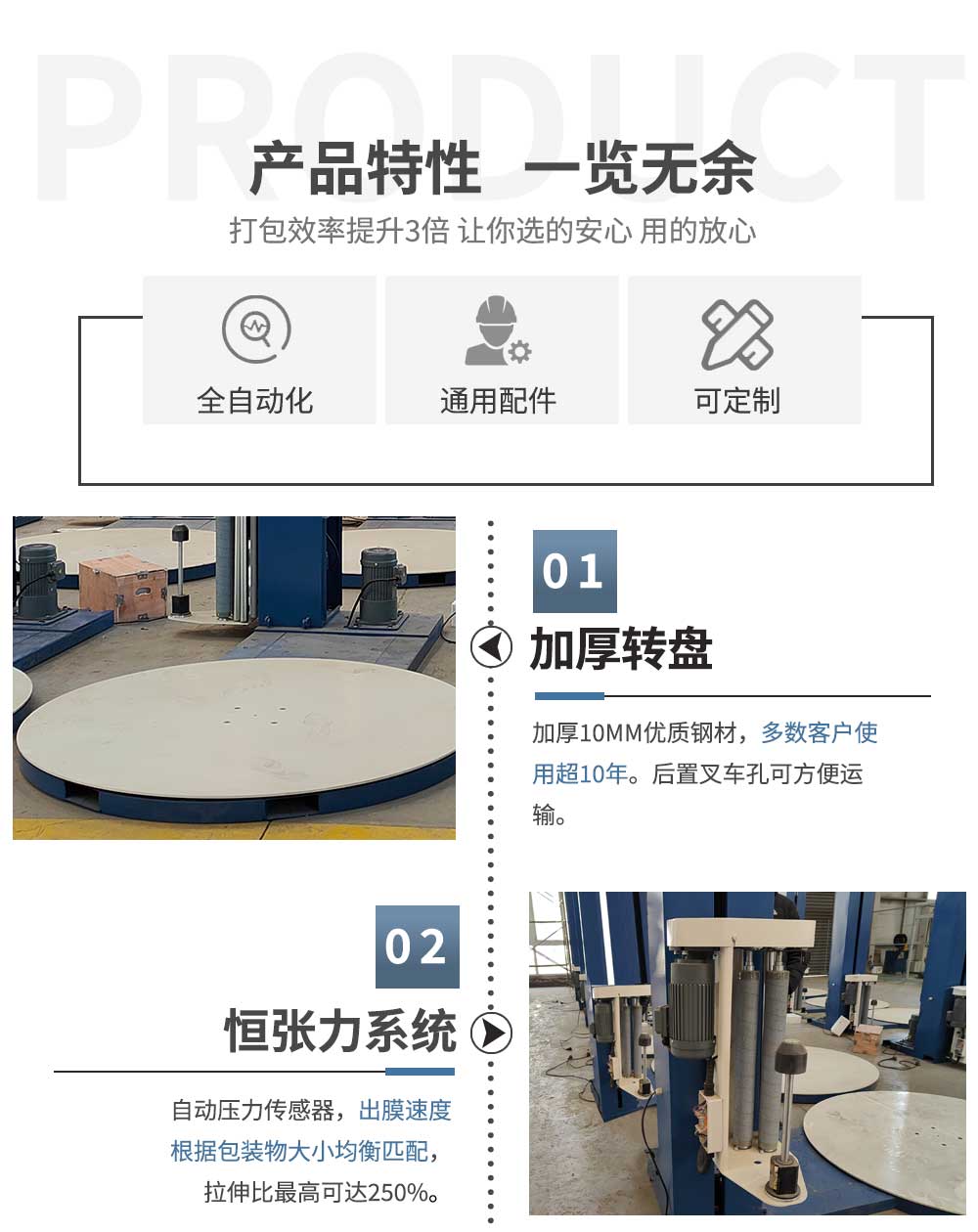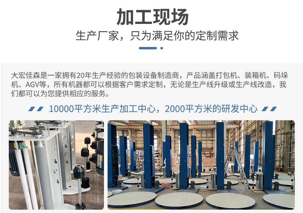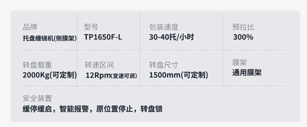 大宏佳森托盤纏繞包裝機(jī)(側(cè)膜架)TP1650F-L,適用于散貨的集裝箱運(yùn)輸和散貨托盤的包裝。